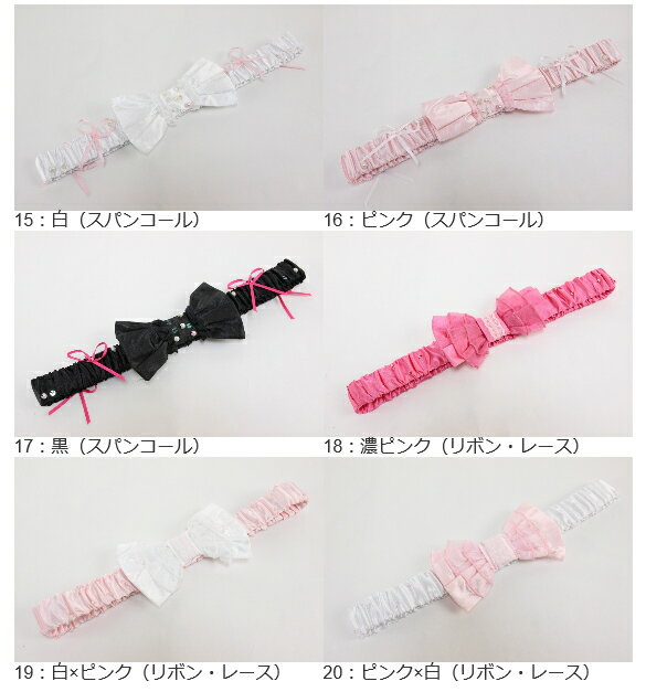 色 1:白×ピンク(バラ) 2:ピンク×ピンク(バラ) 3:黒×ピンク(バラ) 4:白×ピンク(リボン・バラ) 5:ピンク×ピンク(リボン・バラ) 6:濃ピンク×ピンク(リボン・バラ) 7:白(リボン・パール) 8:ピンク(リボン・パール) 9:濃ピンク(リボン・パール) 10:白(リボン・ビーズ) 11:うすピンク(リボン・ビーズ) 12:濃ピンク(リボン・ビーズ) 13:ピンク(リボン・ビーズ) 14:黒(リボン・ビーズ) 15:白(スパンコール) 16:ピンク(スパンコール) 17:黒(スパンコール) 18:濃ピンク(リボン・レース) 19:白×ピンク(リボン・レース) 20:ピンク×白(リボン・レース) サイズ 長さ:約33cm (1周 66cm) 巾 :約4cm 素材 主生地:ポリエステル 100% 飾り :ポリエステル 100% 商品写真に関してのご注意 できるだけ商品と同じ色目を出すよう努力しておりますが、表示画面等の違いから現物と色の違いが生じる場合がございます。